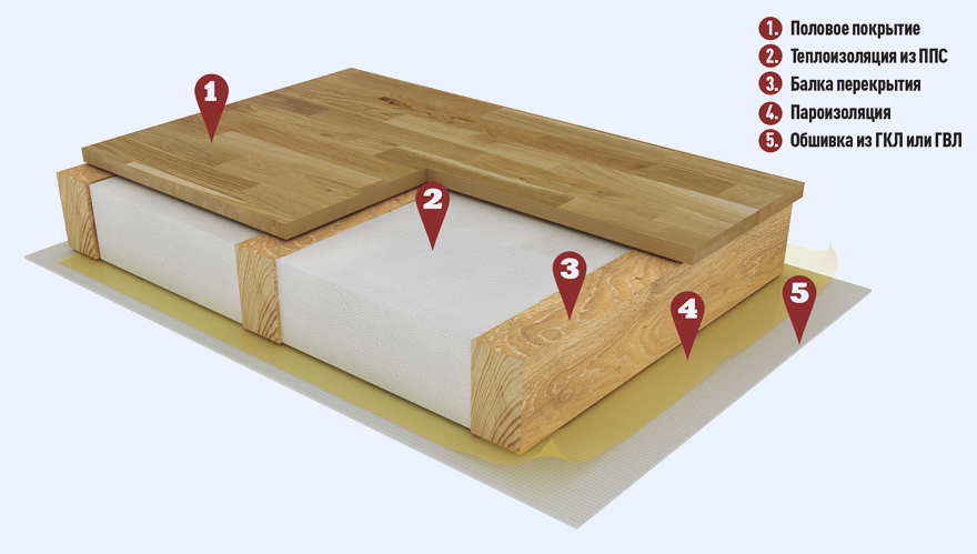 –3D-модель (Revit 2016) «Чердачное перекрытие по деревянным балкам с утеплителем из пенополистирольных плит ППС12-Р»