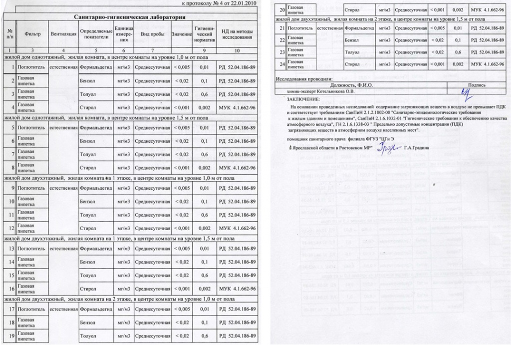 26.01.2010 г. произведены замеры воздушной среды в помещениях офисного здания и ведомственного здания, где проживает семья коменданта.