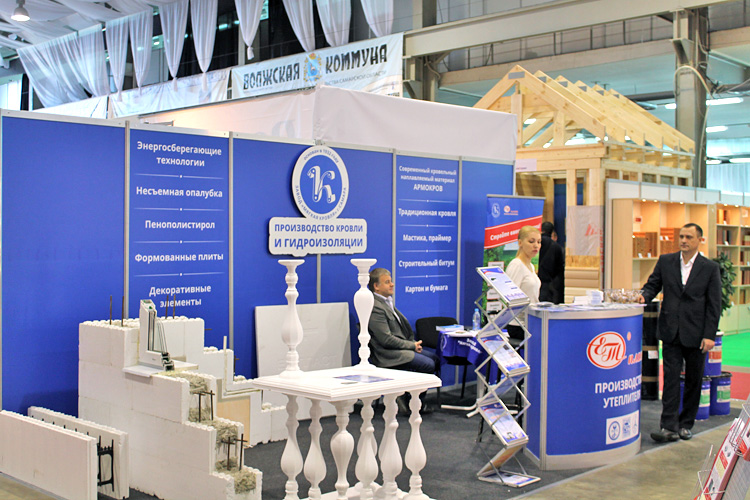 Завод «Мягкая кровля» встречал на своем стенде посетителей образцами не только гидроизоляционных и кровельных материалов, но и энергосберегающей технологией строительства домов.