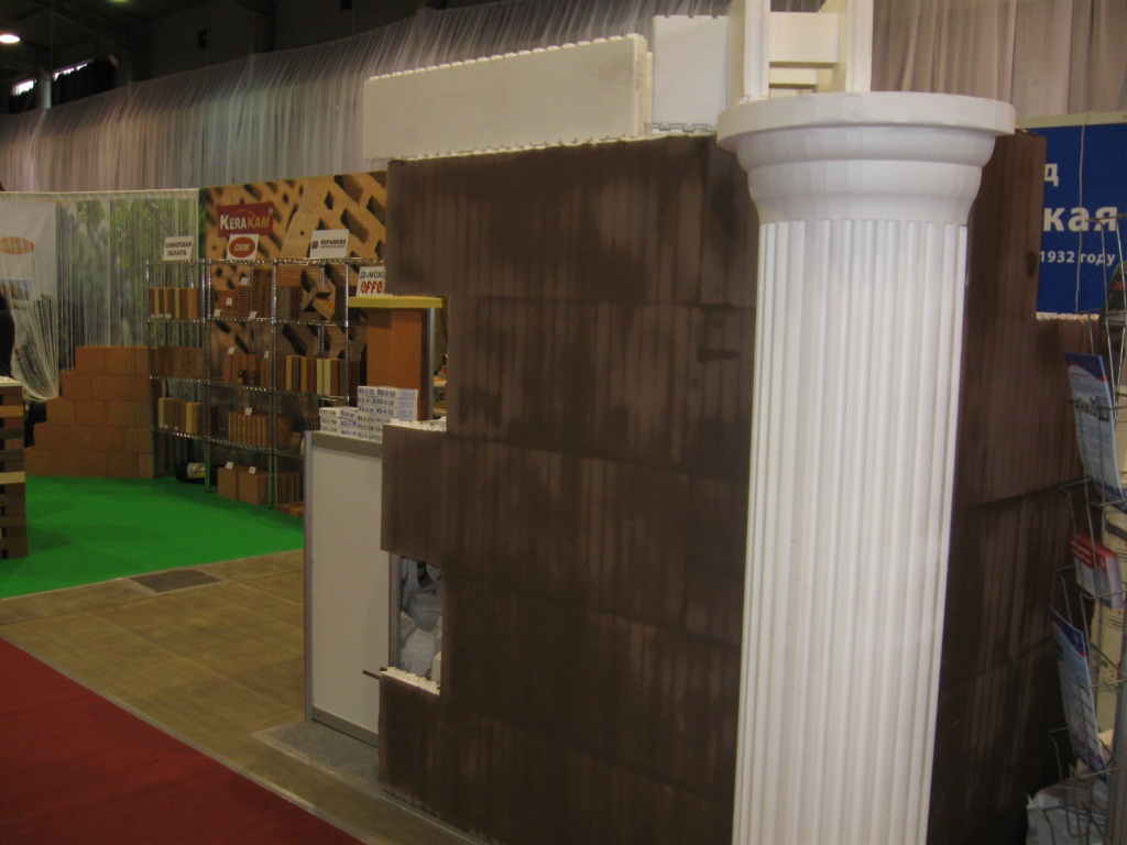 Компании представили свою продукцию: кровельные традиционные, наплавляемые материалы (Армокров, Рубемаст, Рубероид) и изделия из пенополистирола — это несъемная опалубка для стен и фундамента, пенопласт различных марок, формованные плиты, термоконтейнеры, вспененные гранулы, а так же новые виды продукции: изделия фигурной резки(скорлупы теплоизоляционные, декоративные колонны и проч.).